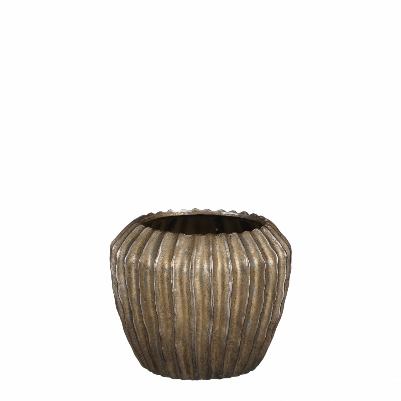 Sodoben okrasni lonec Noma Bronze navdušuje z bogatim kovinskim odtenkom brona in elegantno strukturirano površino, ki doda prostoru toplino in razkošje. Njegov kovinski sijaj poudari naravne odtenke rastlin in ustvari prestižen videz, primeren tako za dom kot pisarno. Zaradi svoje velikosti je idealen za srednje velike sobne rastline, zelišča ali dekorativne kompozicije.Lastnosti: