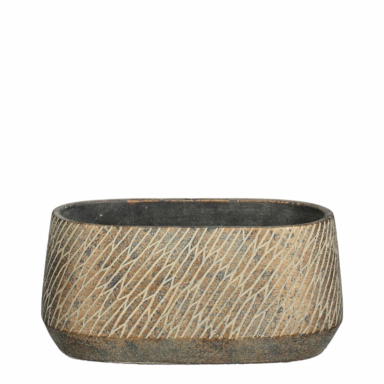 Sodobna okrasna skleda Camino D. Brown navdušuje s svojim toplim temno rjavim odtenkom in elegantno ovalno obliko, ki se čudovito poda različnim slogom notranje opreme. Njena sijoča glazura z nežnim prelivom barv poudari prefinjen značaj in naravno toplino materiala. Skleda je odlična izbira za dekorativne aranžmaje, manjše rastline ali kot samostojen estetski dodatek v prostoru.Lastnosti: