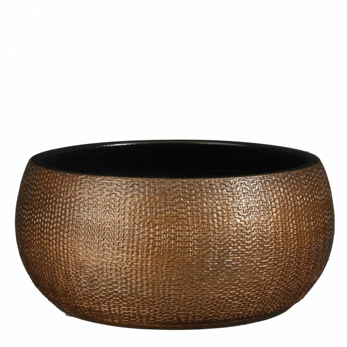 Razkošna okrasna skleda Porto Bronze Metallic navdušuje s svojim toplim bronastim odtenkom in prestižnim kovinskim leskom, ki prostoru doda občutek elegance in topline. Njena sodobna, zaobljena oblika s sijočo kovinsko glazuro ustvarja čudovit kontrast z naravnimi odtenki rastlin ali dekorativnih elementov. Skleda je popolna izbira za ustvarjanje dekorativnih aranžmajev ali kot samostojen estetski kos v vsakem interierju.Lastnosti: