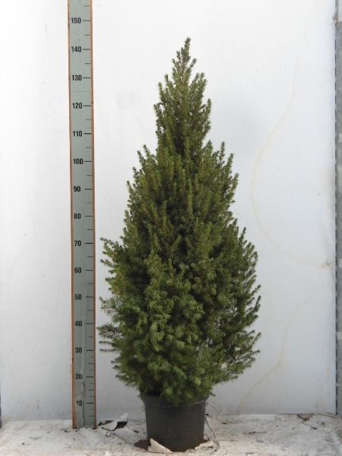 znana kot stožčasta smreka, je ena najbolj priljubljenih okrasnih iglavcev zaradi svoje popolne, naravno stožčaste oblike in gostih, mehkih svetlo zelenih iglic. Zaradi kompaktne rasti in nežnega videza je idealna izbira za manjše vrtove, terase, balkone ali kot živo božično drevesce v loncu. Njena oblika ostaja urejena brez obrezovanja, kar jo naredi zelo hvaležno za vzdrževanje.