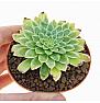 je čudovita in dekorativna sukulentna rastlina, znana po svojih edinstvenih barvah in kompaktnem videzu. Njeni mesnati listi tvorijo goste rosette, ki se odlikujejo z živahnimi zelenimi in kremasto belimi odtenki, zaradi česar rastlina izstopa z elegantnim in barvitim videzom. Zlasti ob izpostavljenosti soncu se barve še bolj poudarijo, kar naredi rastlino še privlačnejšo. Aeonium 'Emerald Ice Variegato' je odlična izbira za ljubitelje sukulentov, saj je enostavna za nego in idealna za notranje prostore, terarije ali sušne vrtove.