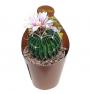 je kroglasti kaktus s samotnim habitusom, ki se občasno lahko razraste pri dnu. Njagovo steblo, svetlo zelene barve, krasijp številne vitke, bele, skoraj prosojne bodice. Sppomladi in poleti nas lahko razveseljuje z majhnimi, lijakastimi cvetovi, bledo rožnate barve z osrednjimi vijoličnimi črtami.