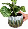 je izjemno dekorativna sobna rastlina, znana po svojih velikih, okroglih listih, ki so svetlo zeleni in prepleteni z bolj temnimi žilami, kar ustvarja prelep kontrast. Listi so široki, usnjati, z izrazitim vzorcem, ki daje rastlini edinstven videz. Ta vrsta kalateje je zelo cenjena zaradi svoje elegancije in lepega okrasnega listja, zaradi česar je priljubljena izbira za notranje prostore, kjer zagotavlja živahen, tropski pridih.