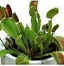 bolj znana kot Venus flytrap, je ena izmed najbolj nenavadnih in fascinantnih rastlin na svetu, znana po svoji sposobnosti lovljenja in prebave žuželk. Njeni listi so specializirani za lov, saj se ob dotiku hitro zaprejo, kar omogoči rastlini, da ujame svojo plen. Venus flytrap je majhna rastlina z značilnimi "pastmi" na koncu svojih listov, ki so obdani z ostrimi "zobmi" in občutljivimi dlačicami, ki sprožijo zapiranje pasti. Zaradi svoje edinstvene narave in nenavadne lepote je priljubljena izbira med ljubitelji rastlin, ki iščejo nekaj posebnega in eksotičnega.